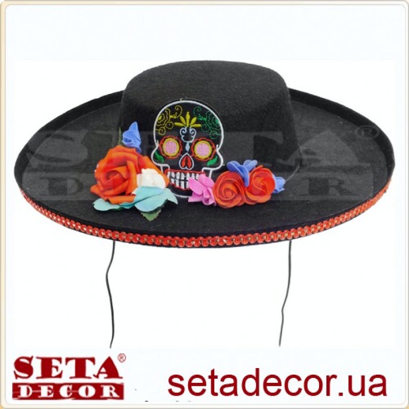 Эффектная карнавальная шляпа для вечеринки в стиле Санта Муэрте (Santa Muerte) или на Хэллоуин.