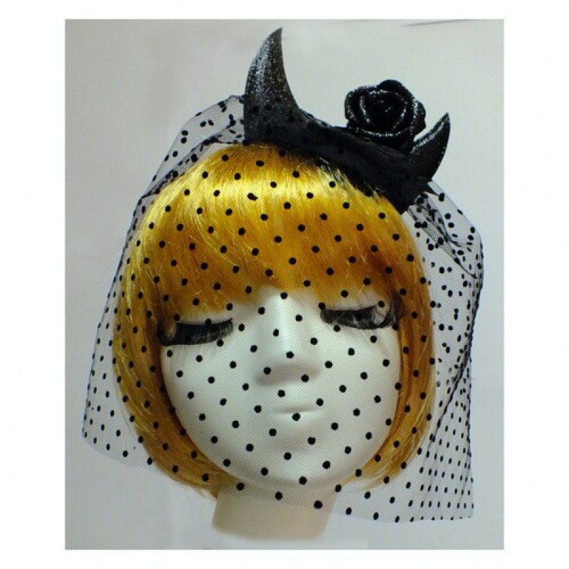 Карнавальная шляпка-вуалетка с рожками для образа чертовки (черта).