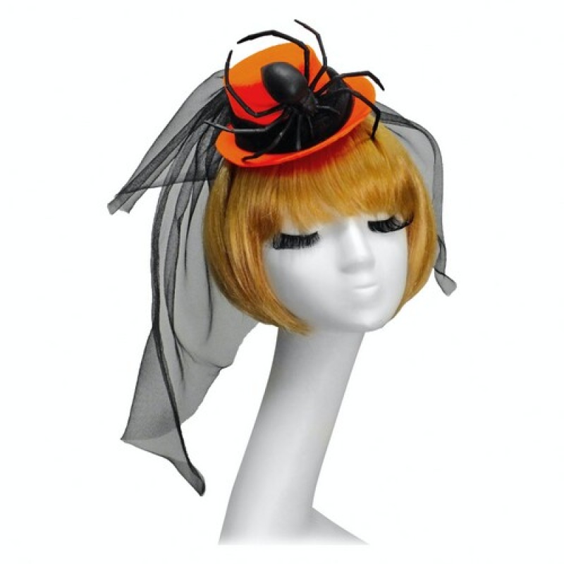 Яркая шляпка с большим пауком и фатой на Хэллоуин (Хеллоуин, Halloween). Надевается с помощью резинки.
