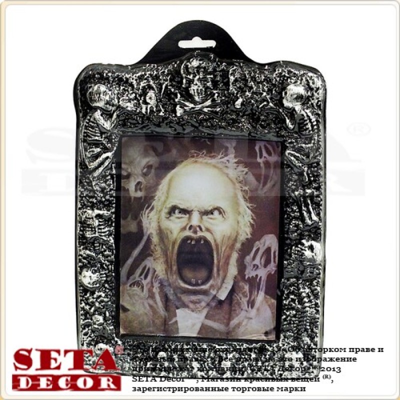 Голограммная картинка с жутким образом - хэллоуинский элемент декора. На фото одна картинка, под разными углами обозрения рисунок меняется.