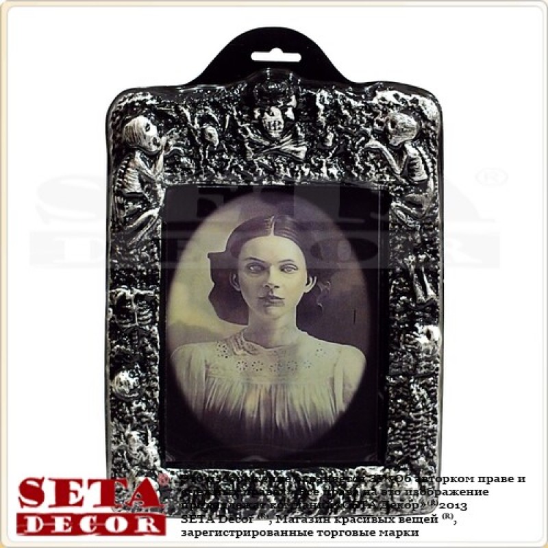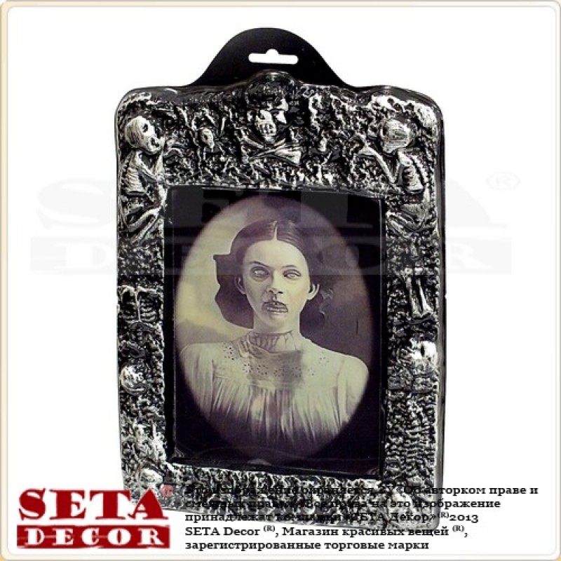 Голограммная картинка с жутким образом - хэллоуинский элемент декора. На фото одна картинка, под разными углами обозрения рисунок меняется.