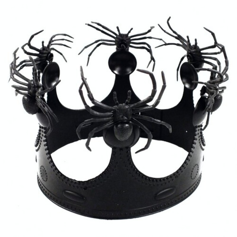 Карнавальная корона черного цвета, декорированная пауками для дополнения костюма на Хэллоуин (Halloween).