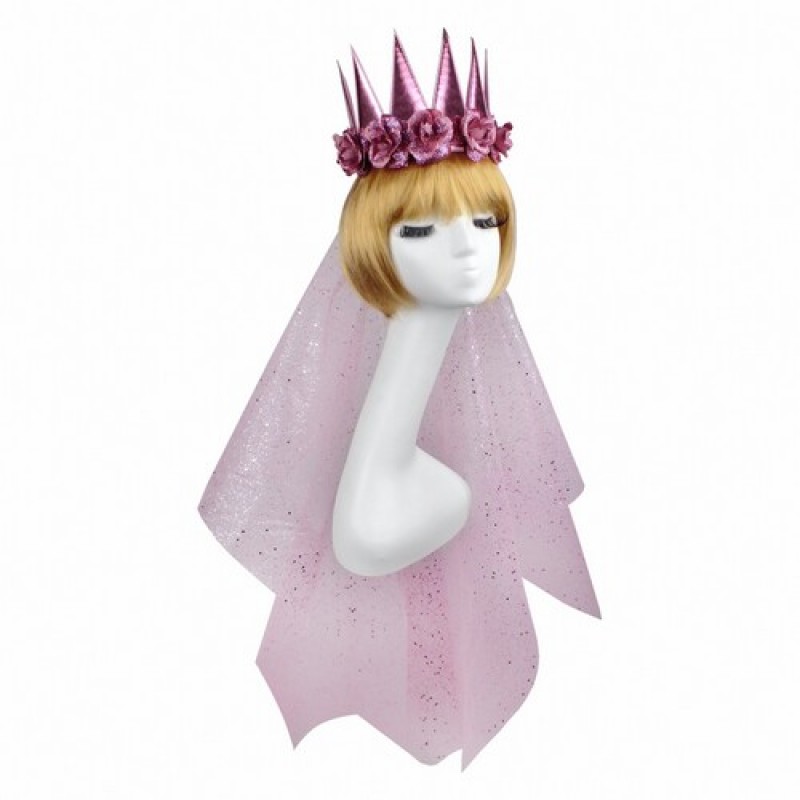 Тканевая корона на липучке с блестящими цветами и длинной фатой для костюма королевы, принцессы на Новый год.