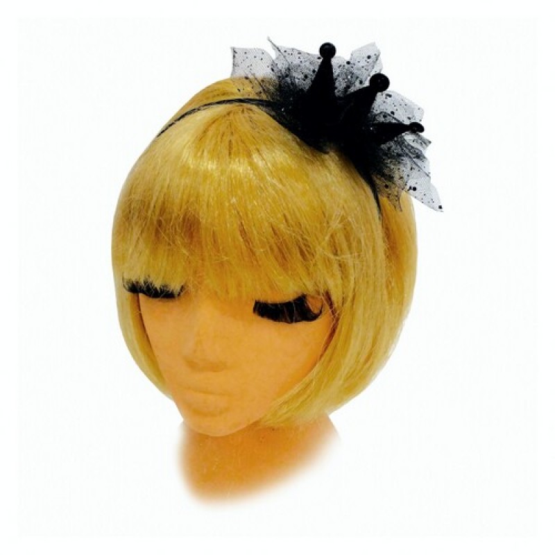 Карнавальная коронка с блестящим фатином на обруче замечательно подходит для образа принцессы. Также это отличный аксессуар для девичника.
