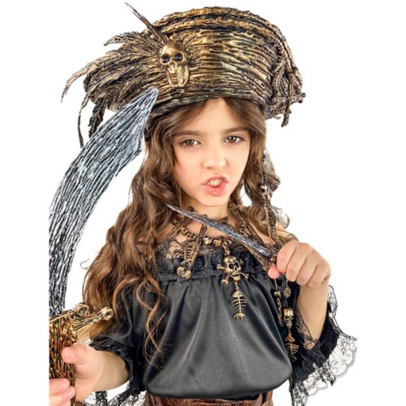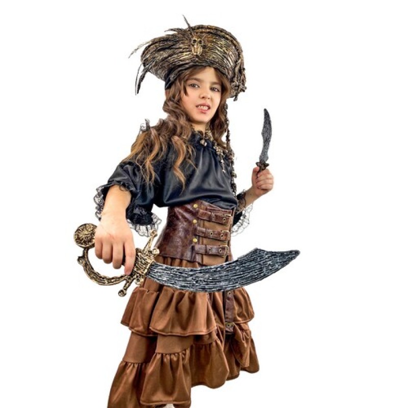 Костюм Пиратка Steampunk детский, состоит из рубашки,юбки, корсета, шляпы, ожерелья и двух ножей. Подойдет для карнавальных образов: пиратка, кабаре, стимпанк, steampunk.