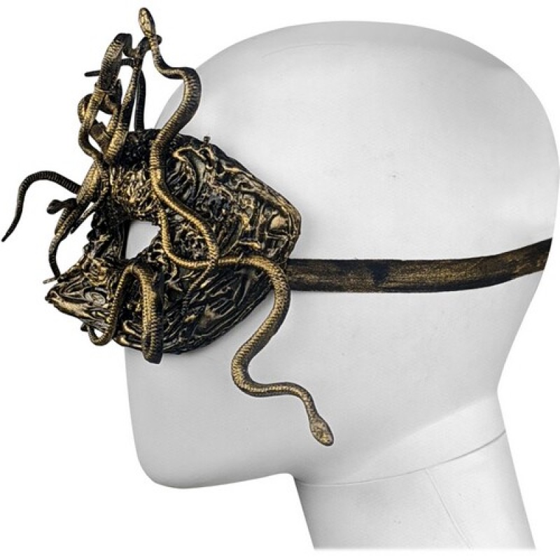 Карнавальная маска на синтетичесской ленте, декорированный змеями. Этот карнавальный аксессуар - прекрасный выбор для дополнения карнавальных образов: Медуза Горгона, повелительница змей, королева монстров, королева тьмы, королева загробного мира, на тематическую вечеринку Хэллоуин (Halloween).