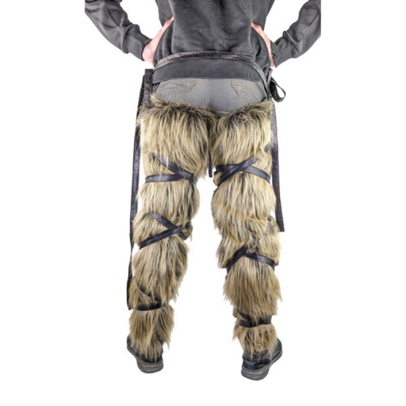 Оригинальные меховые накладки на ноги на завязках.
