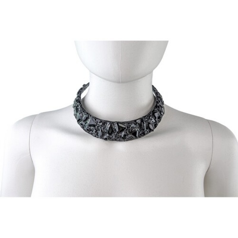 Стильное и уникальное колье ручной работы декорировано множеством камней, что создает впечатление кристаллической структуры.