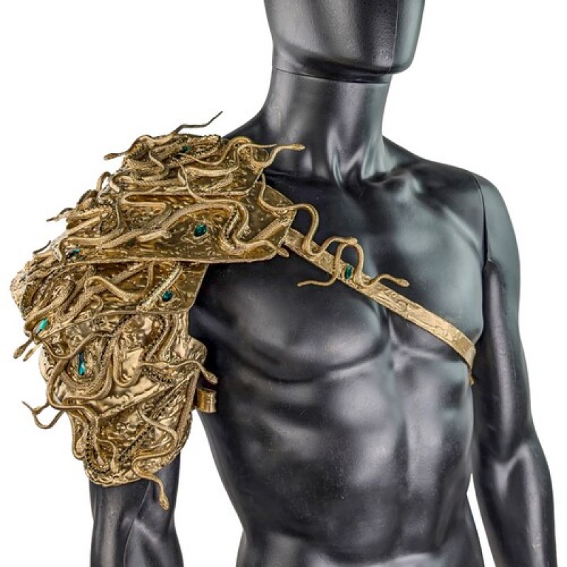 Карнавальный аксесуар в виде наплечника (пагона), декорирован маленькими змеями, изумрудными камнями и стразовой лентой.