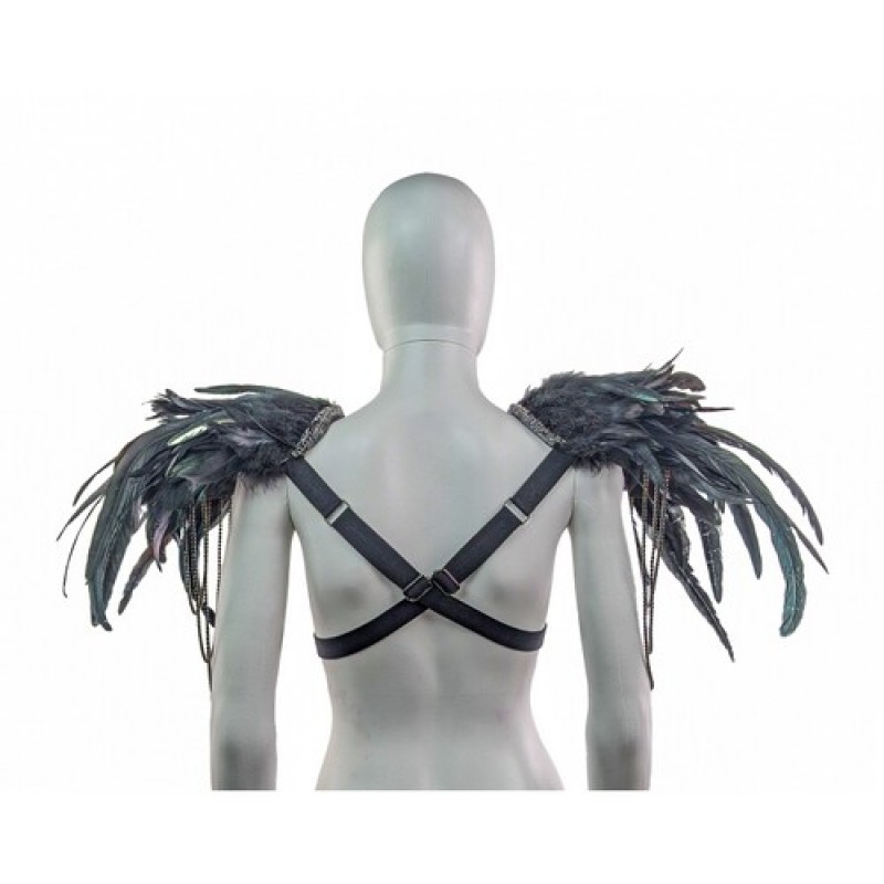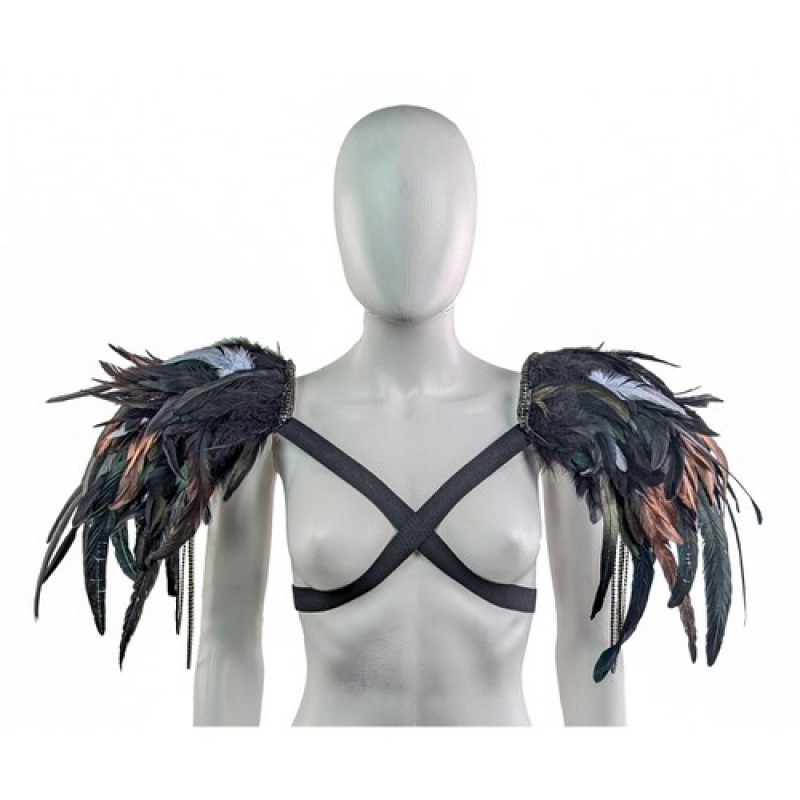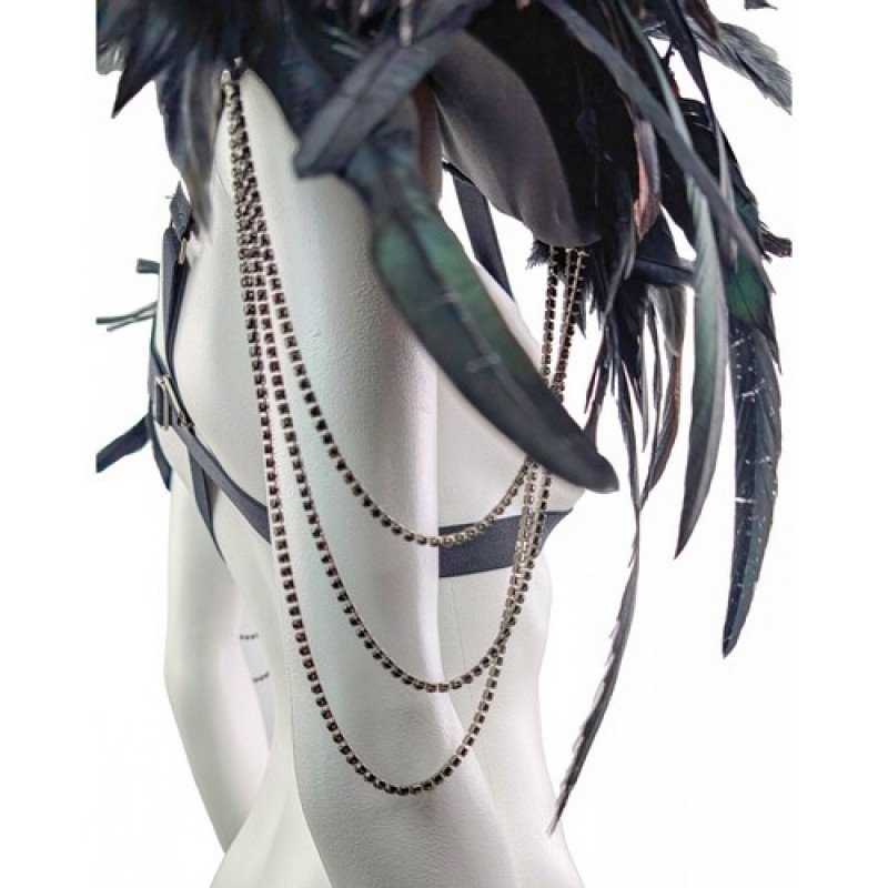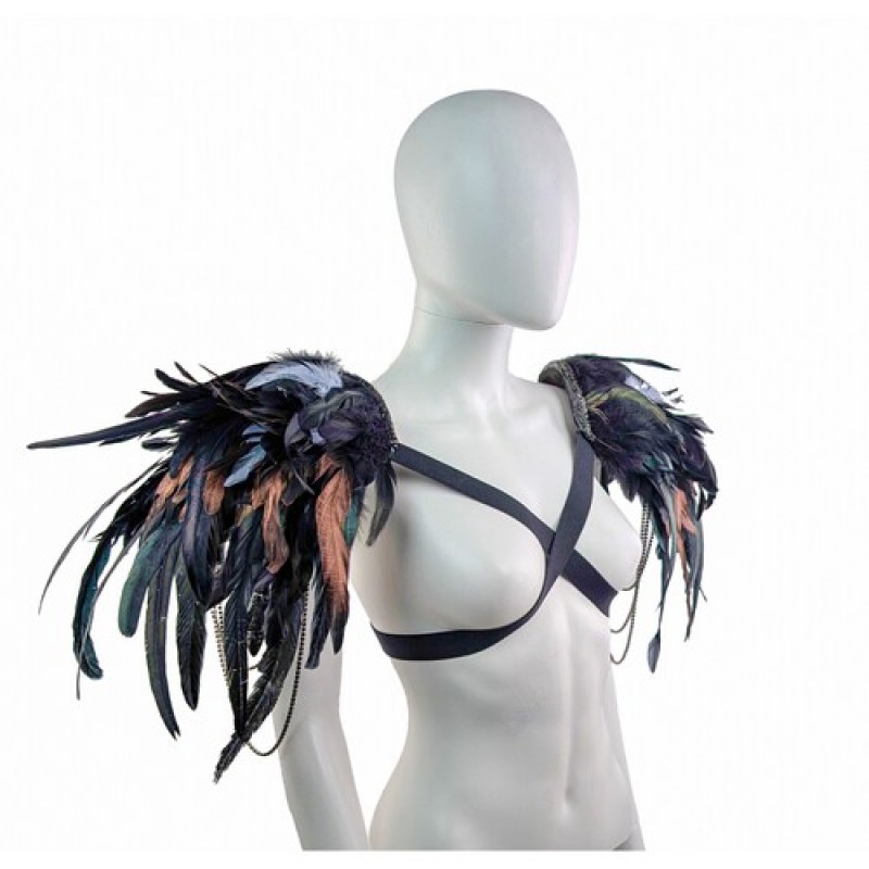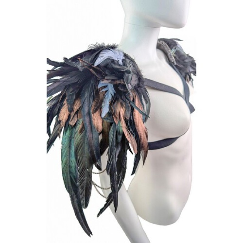 Карнавальный аксесуар в виде наплечников (пагонов), декорированы натуральнми перьями с подвесками из камней на металической ленте.