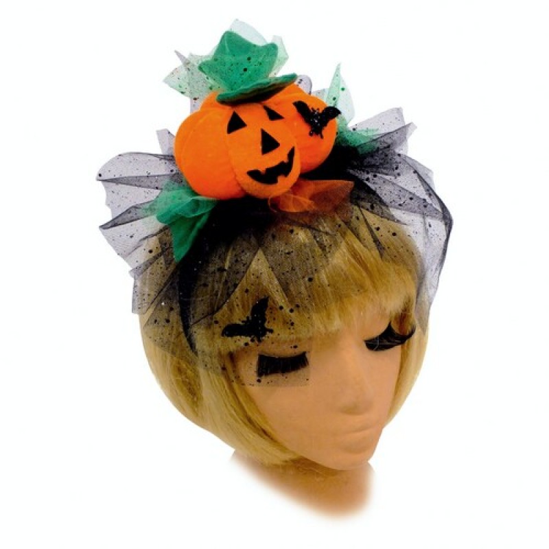 Карнавальный обруч с оранжевой плюшевой тыквой и блестящим фатином - аксессуар на хэллоуинскую вечеринку.