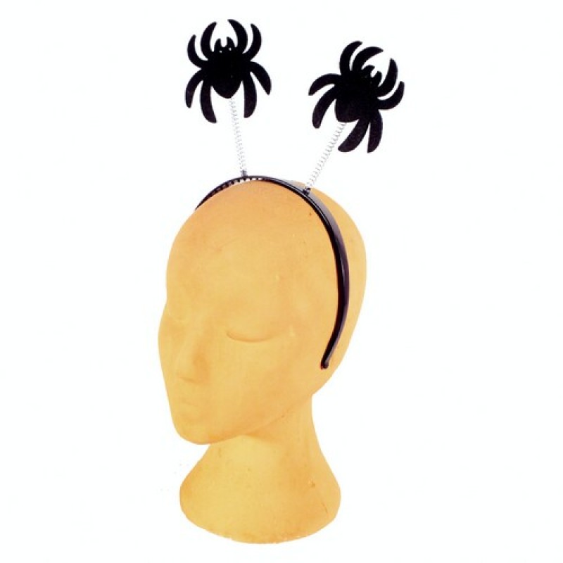 Карнавальный аксессуар на Хэллоуин в виде обруча с черными паучками.