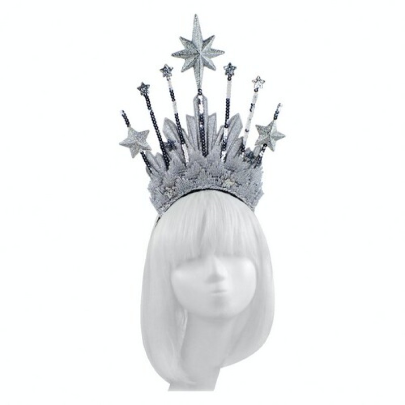 Дизайнерский аксессуар, декорированный короной, звездами shine и серебристыми лучами, подойдёт для карнавального образа на звёздную или космическую вечеринку.