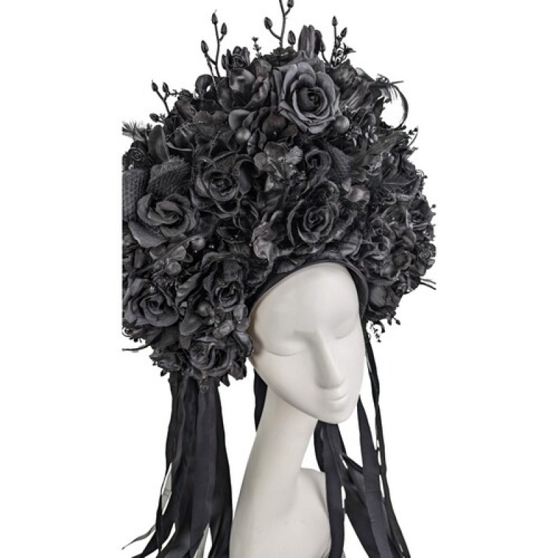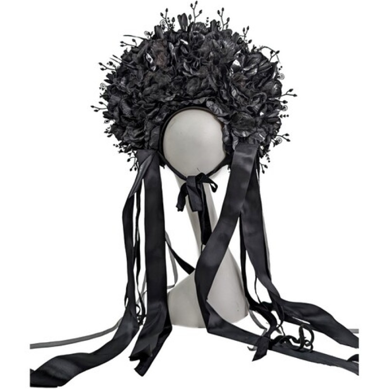 Невероятно роскошный обруч ручной работы, украшенный множеством цветов и деталей, а также лентами.