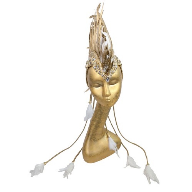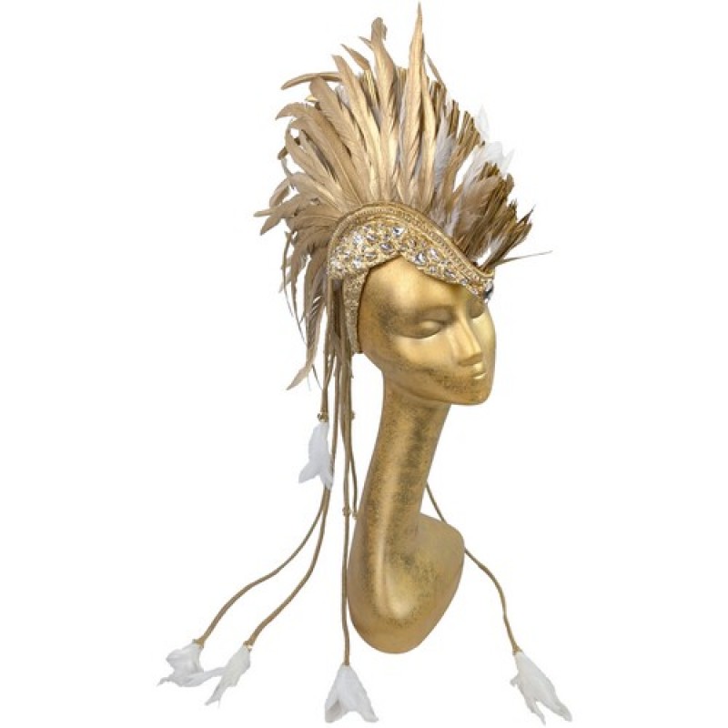 Невероятно роскошный головной убор ручной работы, украшен перьями и множеством камней.