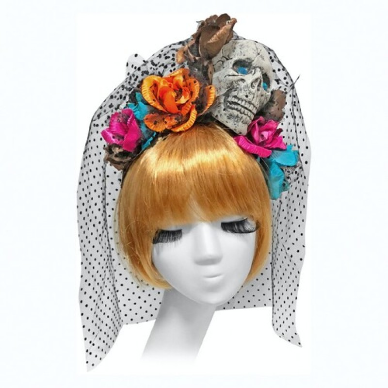 Обруч с большим черепом в фате подойдёт Вам для карнавального образа Санта Муэрте (Санта Муерте, Santa Muerte) на костюмированную вечеринку, Хэллоуин.