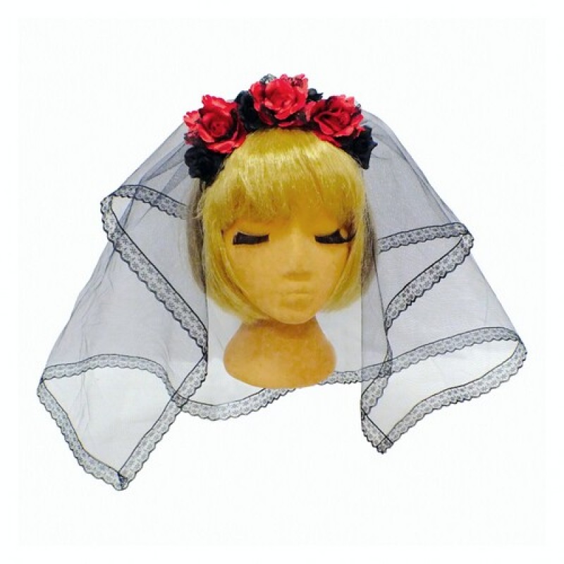 Обруч с цветами и фатой для образа святой смерти Санта Муэрте.