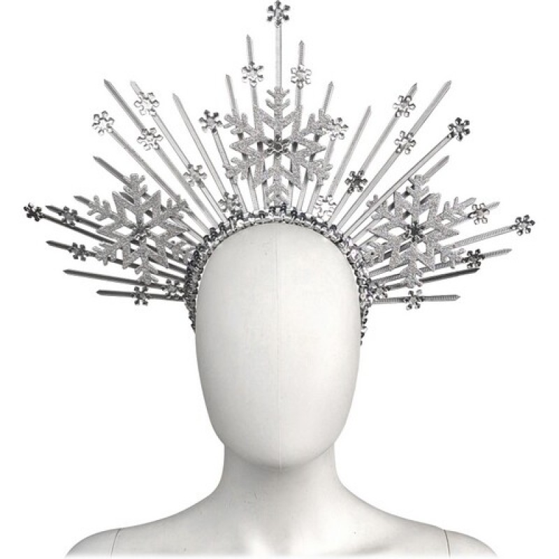 Оригинальный аксессуар в виде обруча, декорированного пластиковыми серебристыми лучами и снежинками . Этот головной убор - великолепный выбор для фотосессии, вечеринки, для дополнения карнавального образа: снежная королева, зима, вьюга, снежинка, богиня. Размер универсальный, подойдёт как взрослым, так и детям.