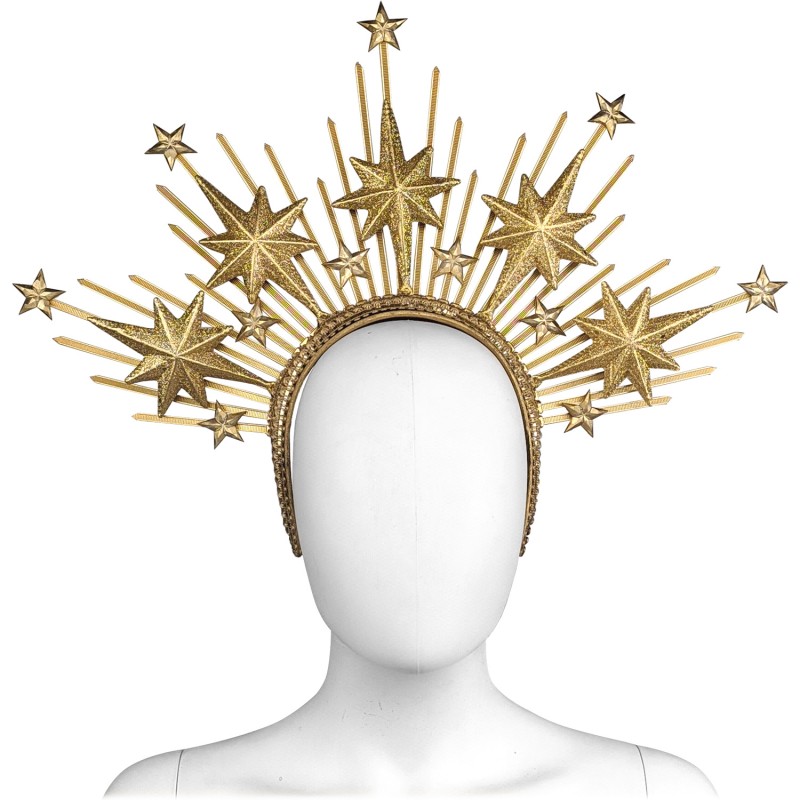 Оригинальный обруч, декорированный пластиковыми лучами и золотистыми звёздами - отличный выбор для фотосессии, космической вечеринки, для дополнения карнавальных образов: космос, галактика, вселенная, звезда, на тематическую вечеринку, Новый год. Размер универсальный, дополнительно фиксируется с помощью резинки.