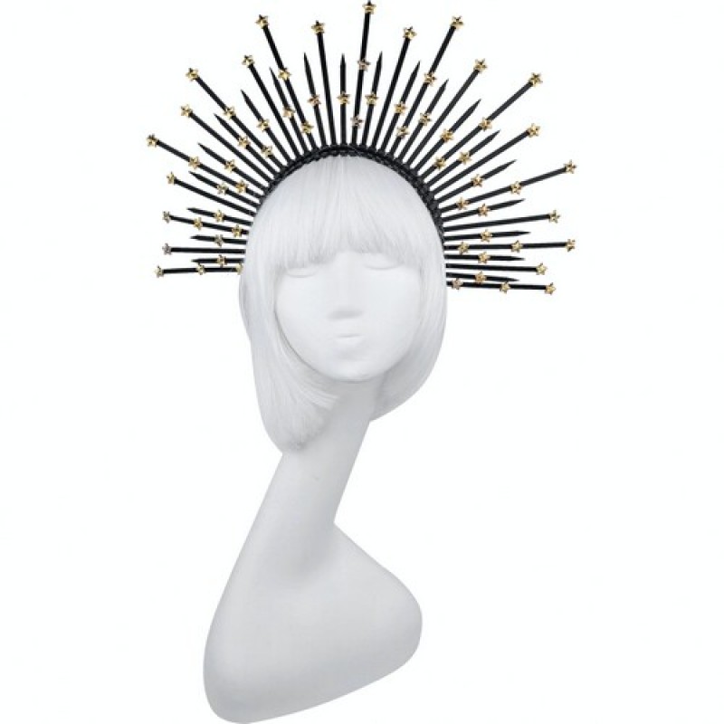 Оригинальный аксессуар в виде обруча, декорированного пластиковыми чёрными лучами и золотистыми звёздами . Этот головной убор - великолепный выбор для фотосессии, тематической вечеринки, для дополнения карнавальных образов: богиня, звезда, вселенная, галактика. Размер универсальный, подойдёт как взрослым, так и детям.