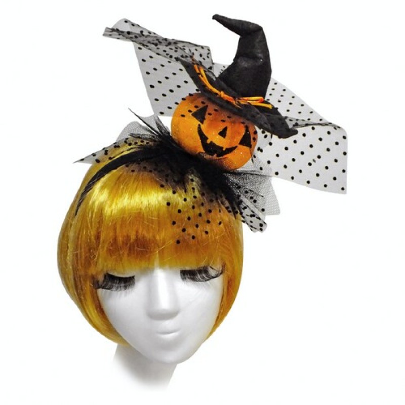 Карнавальный аксессуар на Хэллоуин (Хеллоуин, Halloween) - блестящая тыквочка в шляпе на обруче.