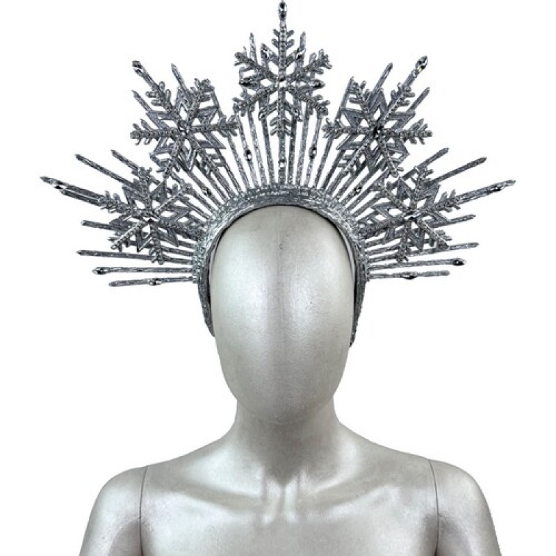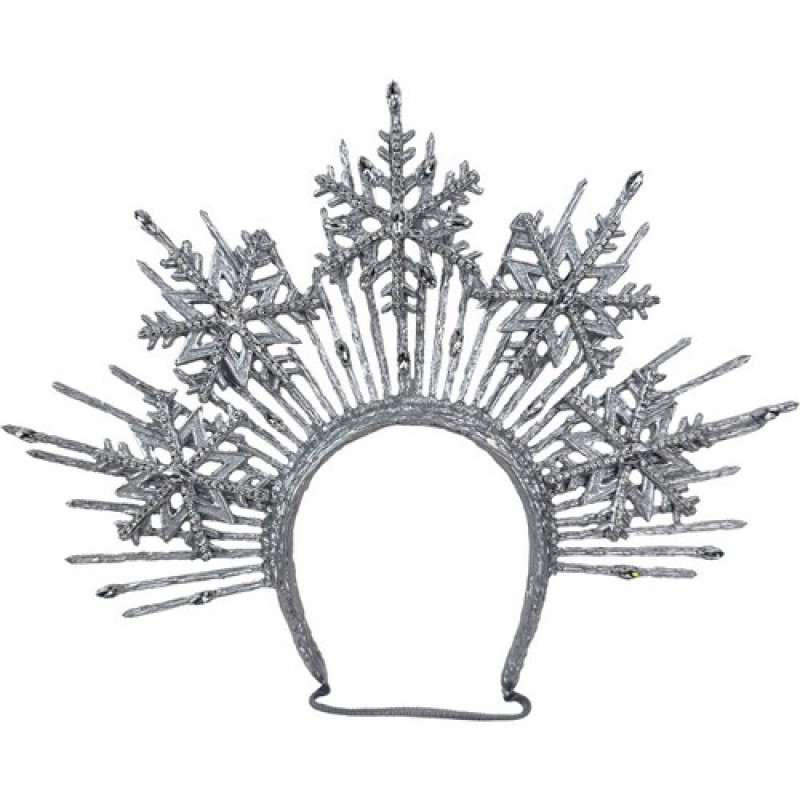 Эффектный обруч в серебристом цвете, декорированный объемными снежинками с блестящими камнями.