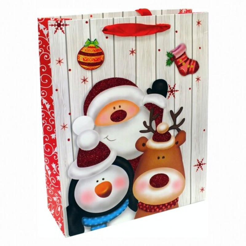 Подарочный пакет с забавным новогодним рисунком, создаст новогоднюю атмосферу, подарок преподнесенный в нем подарит море позитивных эмоций.