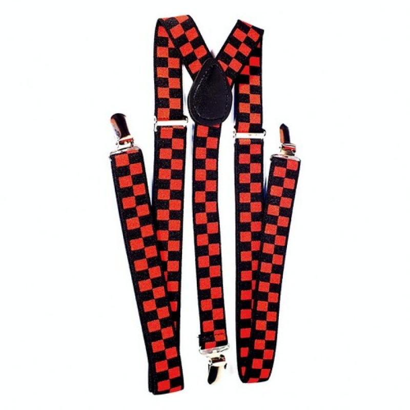 Подтяжки для брюк с чёрно-красной шахматкой карнавальные
