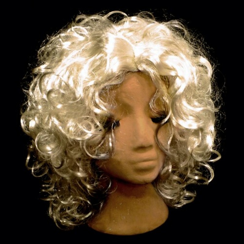 Карнавальный парик из искусственных вьющихся волос на сеточке цвета платиновый блондин.