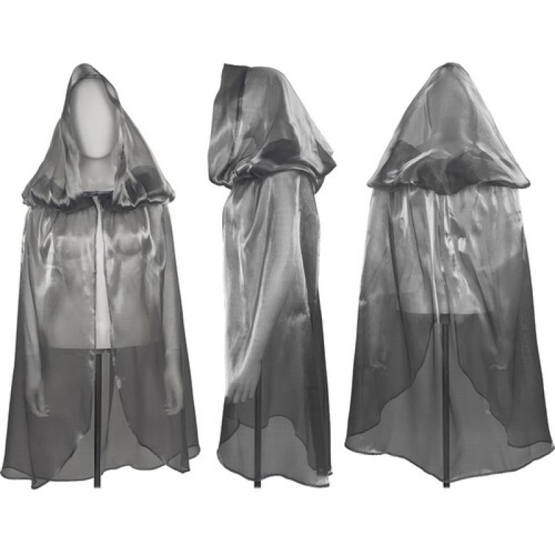 Изящный серый плащ с глубоким капюшоном - прекрасное дополнение для карнавальных образов: принцесса, золушка, фея.