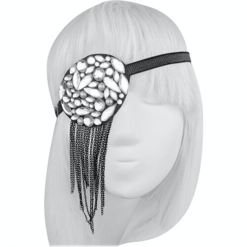 Повязка на глаз, декорированная серебристыми стразами и металлической цепочкой - отличный аксессуар для вечеринки, фотосессии, дополнения карнавального образа пират на Halloween (Хэллоуин). Фиксируется с помощью резинки.