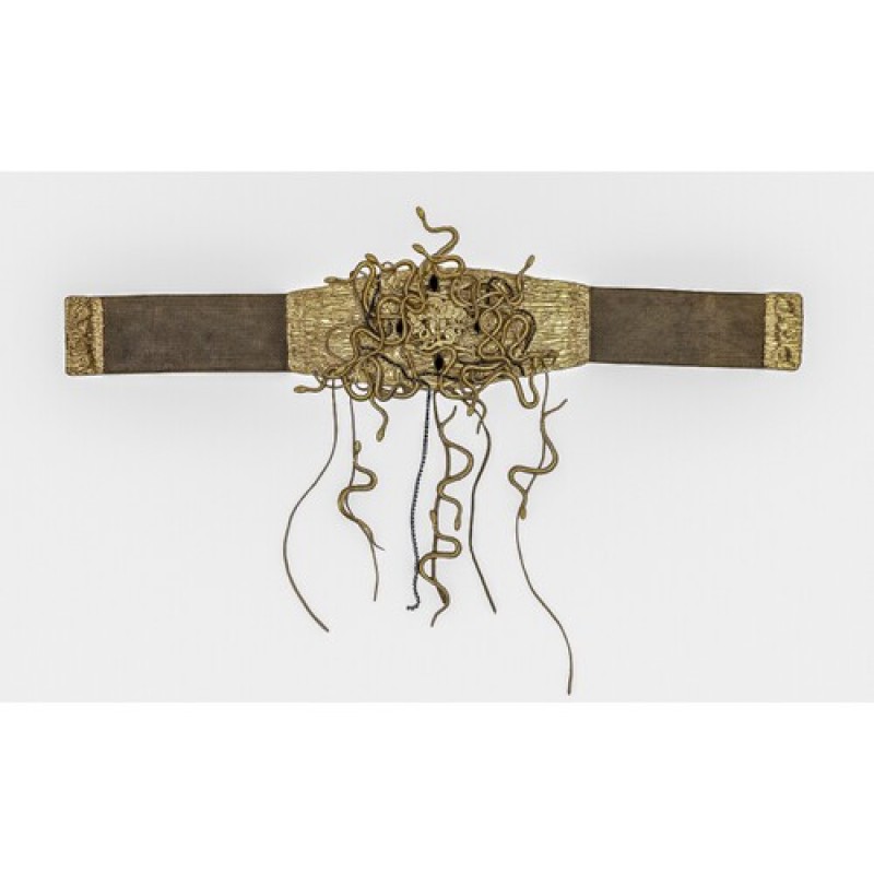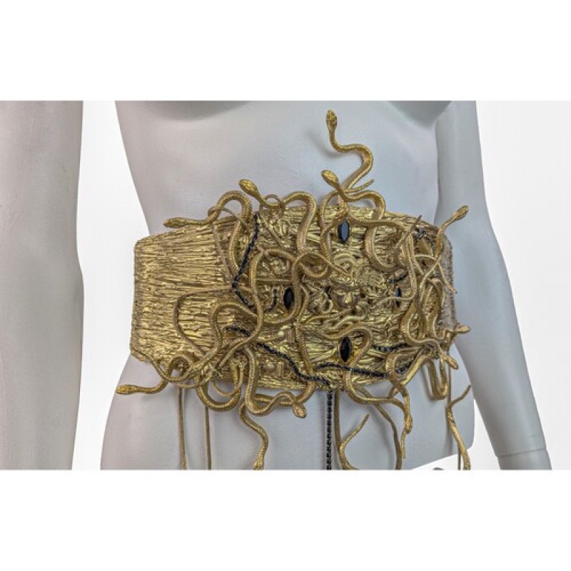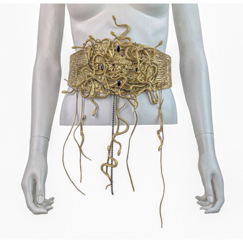 Пояс - корсет декорированый извивающимися змеями, стразовой лентой и изображением медузы Горгоны.