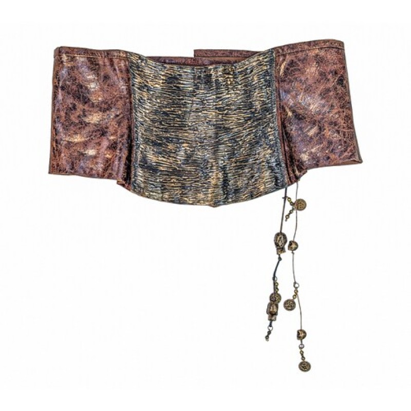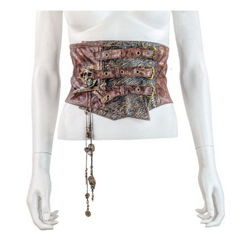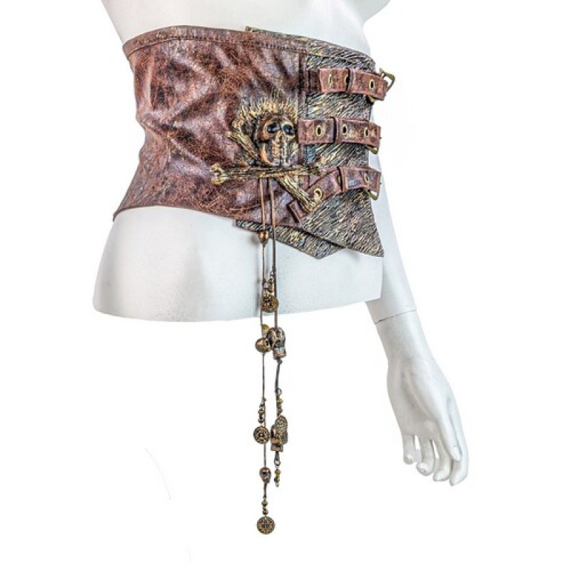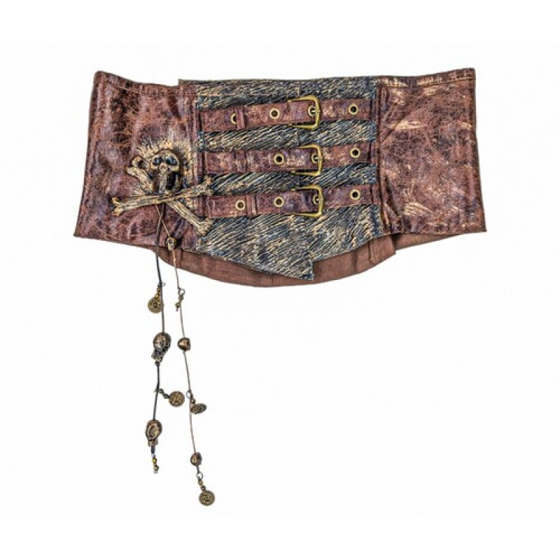 Пояс-корсет, декорированный искусственной кожей,черепом и металлической фурнитурой бронзового цвета. Идеальное дополнение для костюмированной вечеринки (пиратской, стимпанк, steampunk).