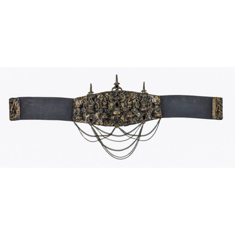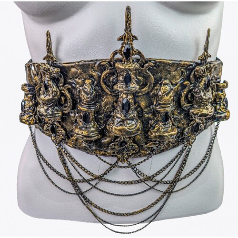 Пояс - корсет декорирован шахматными деталями с черными камнями и вензелями.