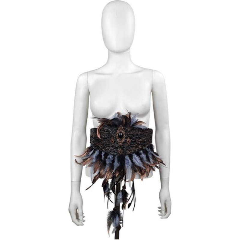 Оригинальный пояс - корсет декорированый перьями, металическими вензелями и камнями, отличный аксесуар для дополнения карнавального образа.