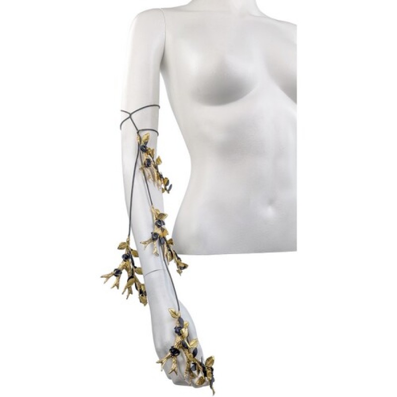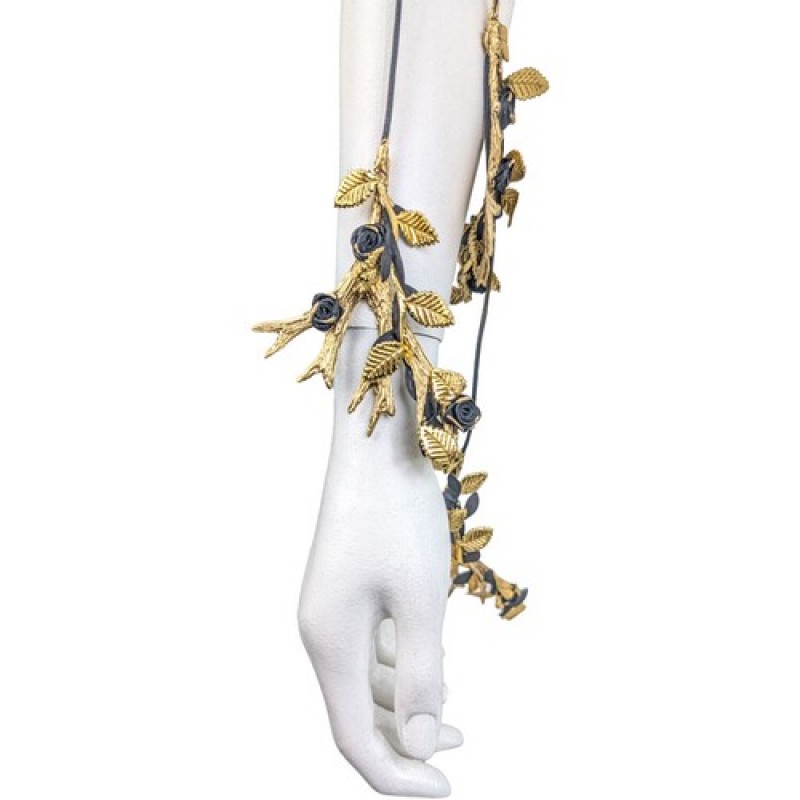 Оригинальное украшение на руку, декорированное золотистыми веточками с черными розочками и листочками на шнурке, отличное дополнение образа лесной нимфы, эльфийки.