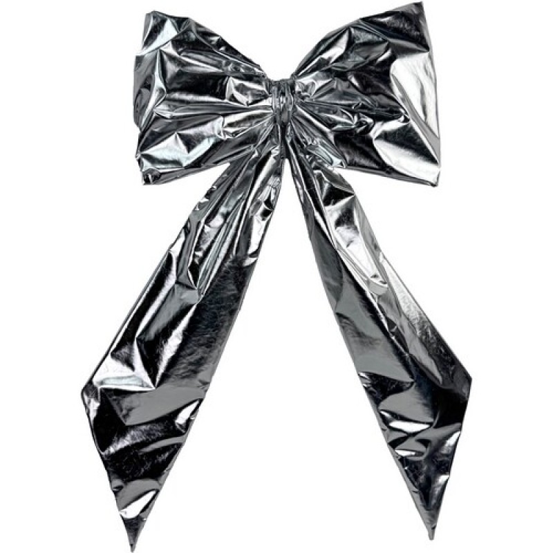 Большой серебристый бант - универсальный декор, который можно использовать как украшение на елку или для декорации помещения.