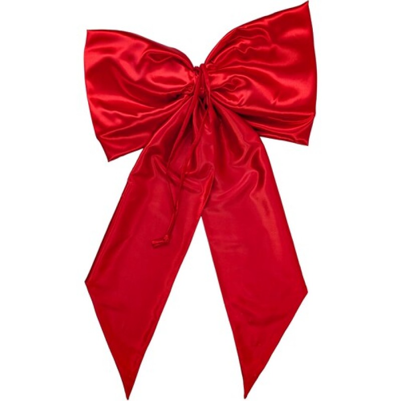 Большой красный бант - универсальный декор, который можно использовать как украшение на елку или для декорации помещения.