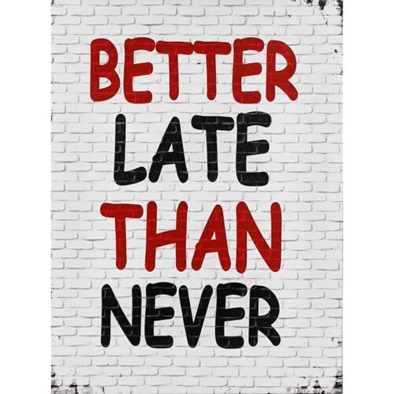 Репродукция (картина, холст, изображение, баннер на стену) с надписью: Better late than never.
