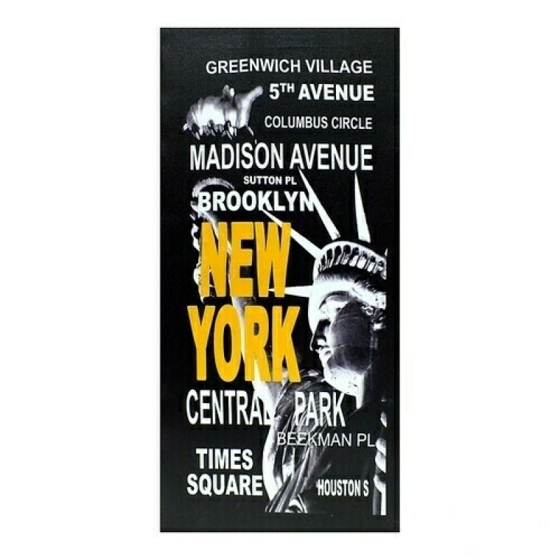 Размер 30 х 60 см. Изображение на холсте на стену с изображением Статуи Свободы и перечнем знаменитых улиц Нью Йорка. С витрины.