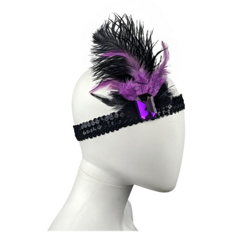 Основной аксессуар для женского карнавального ретро образа на гангстерскую вечеринку. Резинка покрыта пластиковыми пайетками.