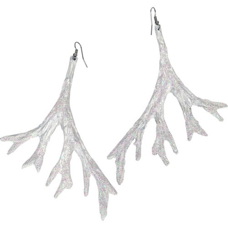 Интересные серьги в оригинальной форме веточки подойдут для создания образа лесной нимфы, эльфийки, новогодней одежды.