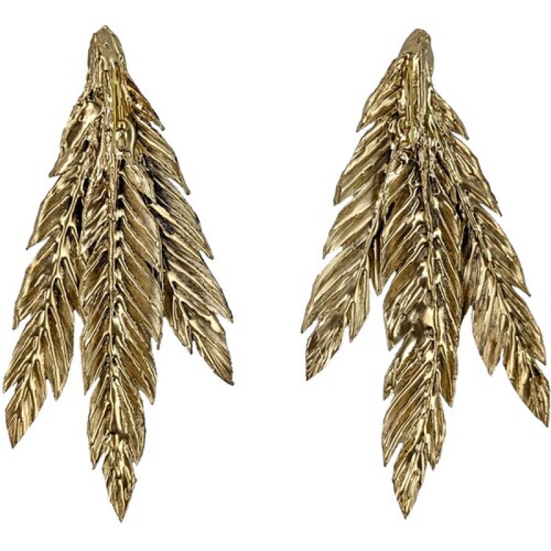 Интересные серьги в оригинальной форме пера декорированы камнями.