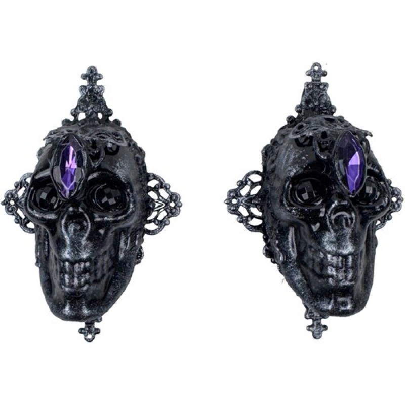 Готические серьги в виде объемных черепов, украшенные камешками и вензелями.
