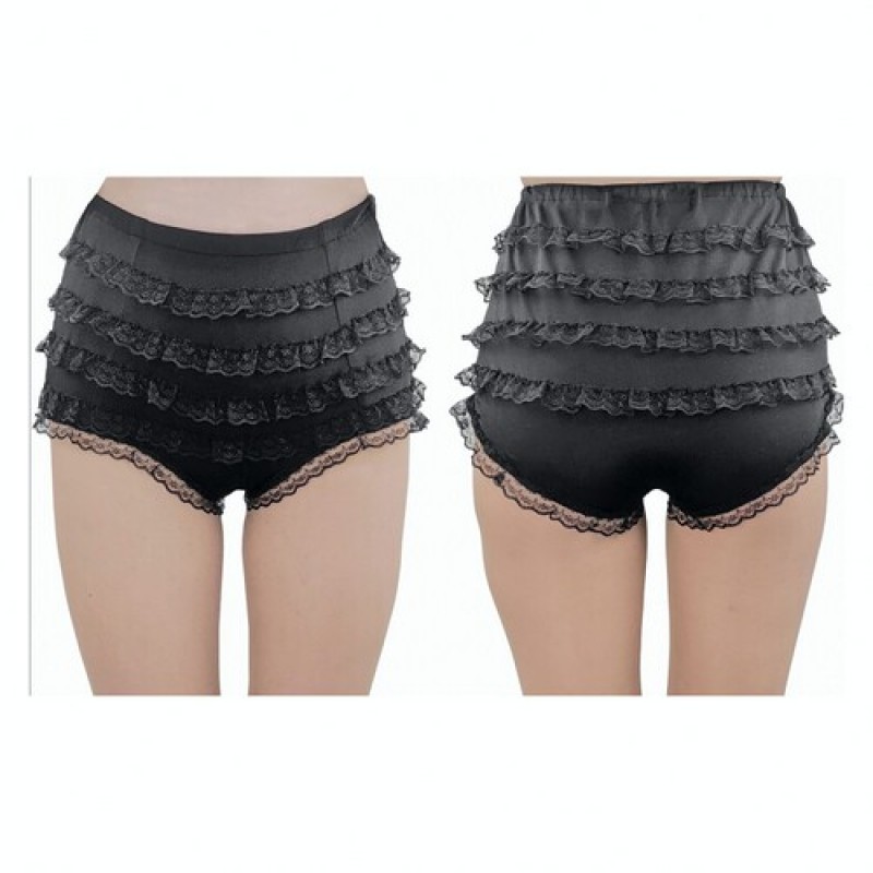Трикотажные короткие шортики с высокой посадкой, декорированные чёрным кружевом - прекрасный вариант для дополнения костюма на вечеринку в стиле бурлеск, кабаре, шоу программ, театральных выступлений.