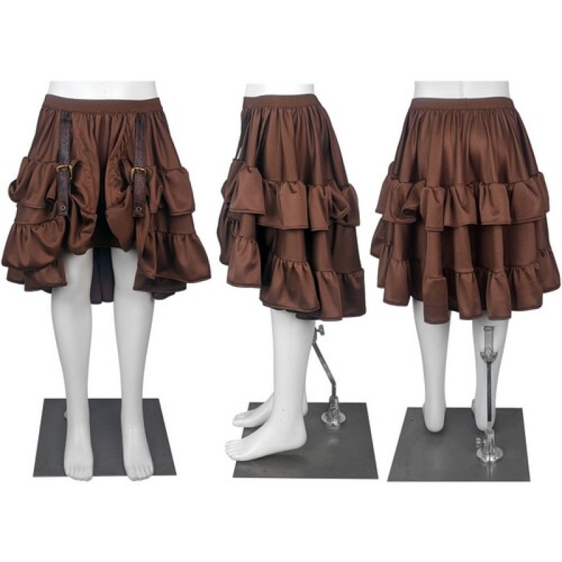 Трикотажная юбка, декорированная воланами, искусственной кожей и фурнитурой бронзового цвета. Подойдет для карнавальных образов: пиратка, кабаре, стимпанк, steampunk.