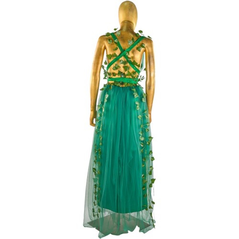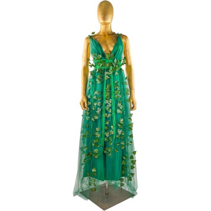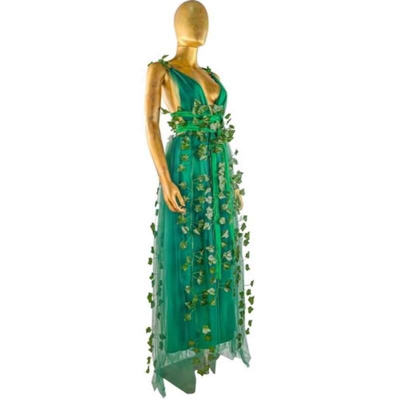 Легкое и нежное фатиновое платье природного зеленого цвета с декоративными переплетениями, украшенное искусственным плющом.