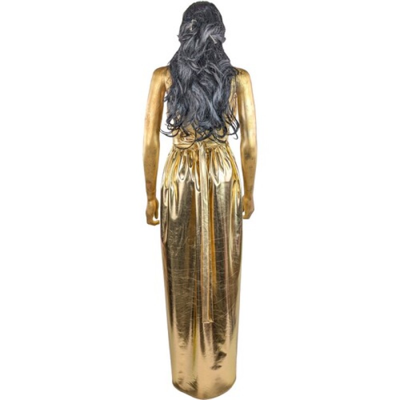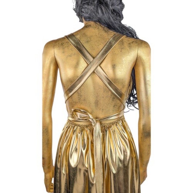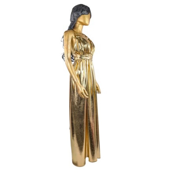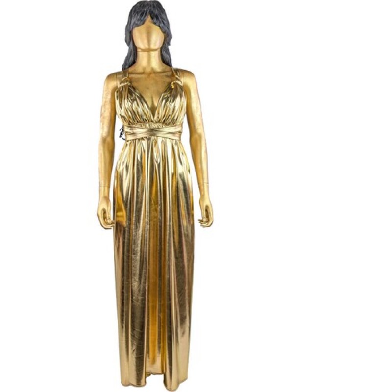 Роскошное платье золотистого цвета с глубоким декольте и драпировкой, создаст элегантный и незабываемый образ.