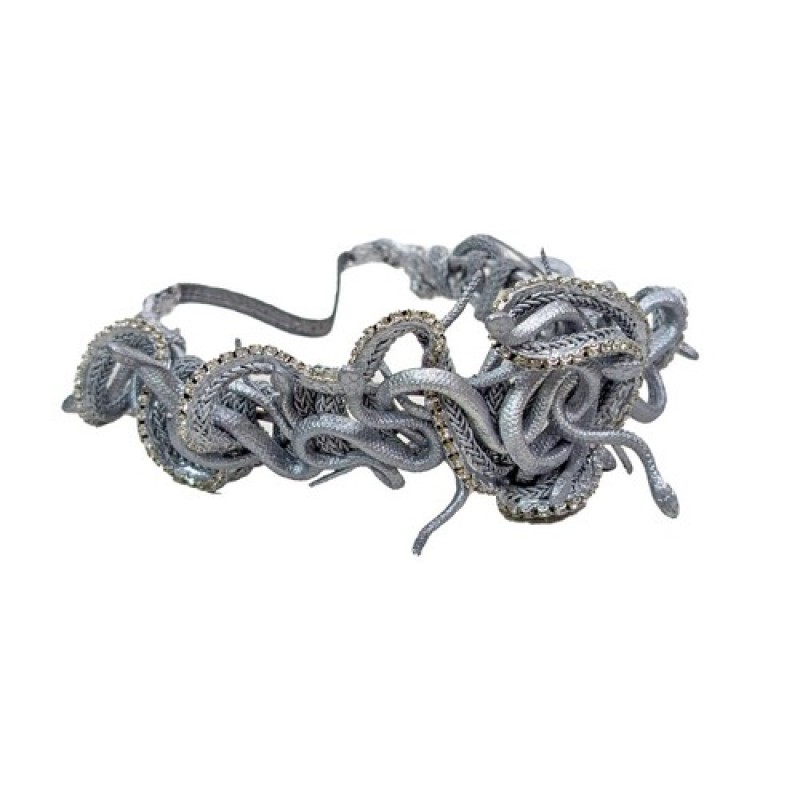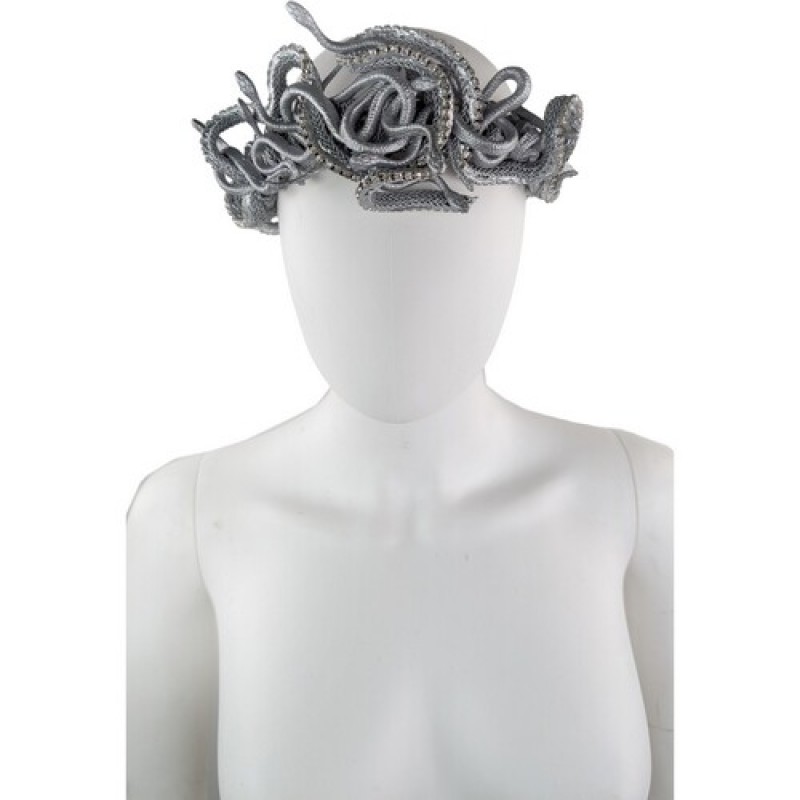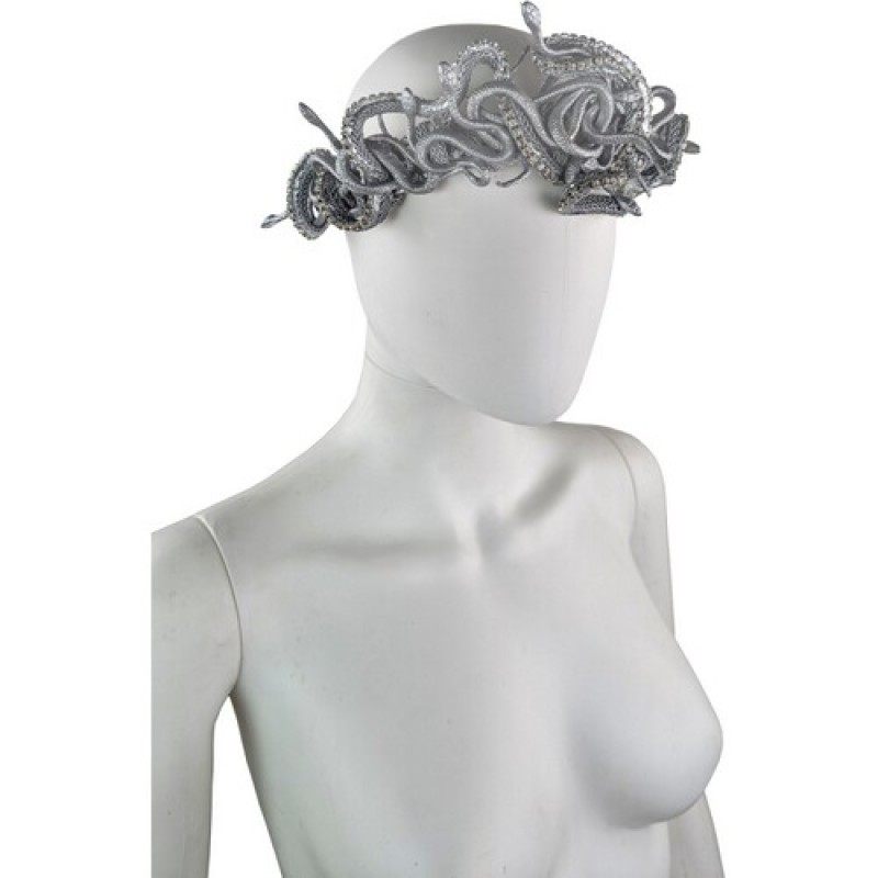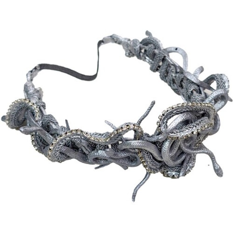 Невероятно красивый головной убор, декорированный извивающимися змеями и стразовой лентой. Этот великолепный головной убор - прекрасное дополнение к карнавальному образу богини Горгоны, а также прекрасный выбор для фотосессии, тематической вечеринки, поможет создасть величественный, роскошый и незабываемый образ на Хэллоуин. Размер универсальный, резулируется за счёт резинки.