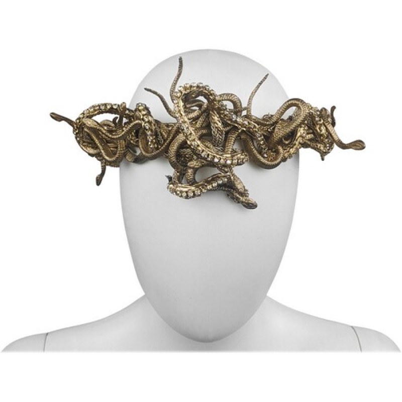 Невероятно красивый головной убор, декорированный извивающимися змеями и стразовой лентой. Этот великолепный головной убор - прекрасное дополнение к карнавальному образу богини Горгоны, а также прекрасный выбор для фотосессии, тематической вечеринки, поможет создасть величественный, роскошый и незабываемый образ на Хэллоуин. Размер универсальный, резулируется за счёт резинки.